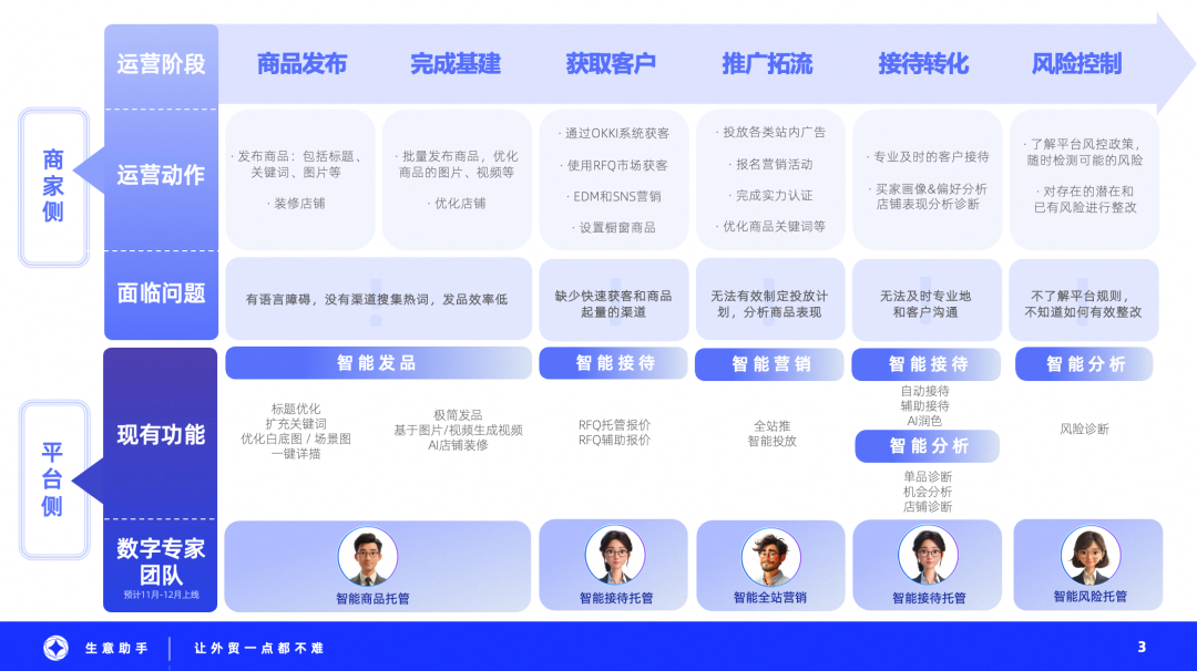 各主力市场有本地化营销团队,帮助企业制定定向关键词优化、Google/TikTok/Meta/LinkedIn本土买家广告、主流展会对接、美工翻译与售后方案。平台还能组织线上线下行业对接会,邀请当地工程师/采购专家与中国供应商深度沟通。配合网红、行业协会、项目集采平台开拓买家资源。