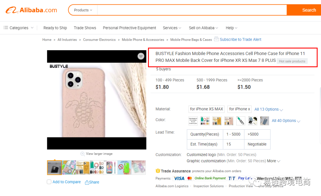 常见误解: A. 三个关键词必须填满 实际:是否填满并不影响搜索结果,主关键词必填,另两个关键词可以用长尾词覆盖,如果没有则不用非得填满。 B. 关键词比产品名称重要,所以名称可以很简单,关键词填写好就可以 实际:产品名称是第一匹配要素,关键词是对产品名称的校正,两者同等重要。 C.罗列关键词对搜索结果有利 实际:罗列会让搜索引擎抓取不了主关键词,对搜索结果很不利。 D. 用不同的或者相近的关键词不断发布产品信息对搜索排序有利 实际:这种铺词行为会导致网站上出现大量的重复铺货,严重影响买家体验;且产品越多管理维护的成本也就越大,会导致网站上出现大量零效果产品,产品数量越多、零效果产品的占比越大,排名受影响的程度也会越大。 E、三个关键词写得一样对排序有利 实际:三个关键词写得一样跟就写一个关键词在搜索中的效果是一样的,且关键词对排在前面还是后面没有影响作用。 Tips: (1)建议先利用好阿里站内关键词,让买家快速搜索到您的产品; (2)关键词不要太长或添加公司内部产品型号,买家较少用很长的词搜索,若产品型号非行业内通用,买家搜索热度可能不高; (3)每个产品可设置三个关键词,同等重要且不分先后,不建议设置三个完全一样的关键词; (4)关键词不区大小写; (5)买家喜好度上线后单复数会影响到排名。 四、产品标题 标题是买家搜索的第一匹配要素,怎样的名称才能吸引买家的眼球呢? 要做好产品名称和买家搜索词的相关性,以手机壳举例: 如果买家在用手机壳搜索产品的时,以下三种标题描述方式,从文本相关性上讲,都是一样的,因为标题里都有包含关键词。 最新高品质TPU PC手机壳 新款批发手机壳适用于iPhone8 流行风格独特设计tpu pc手机壳出售 所以不要盲目为了买家搜索词而不断新发产品、重复铺货。 产品名称中加有突出产品属性和用途的情况 标题中可以使用 with/for ,但一定保证核心词在with/for前面新款批发手机壳适用于iPhone8这个名称中核心词是手机壳,在有或者有系统会判断前面的是核心词 产品名称长度要适当 产品的名称能恰当的突出产品优势特性就最好! 公式:修饰词/营销词+产品属性词/用途/认证/案例等+产品关键词新款批发TPU PC手机壳适用于iPhone8 不要过短,也不要过长。买家搜索词是有50个字符限制的,名称写的太长了就跟买家搜索词匹配度不高。不要忘了:搜索引擎优先抓取的是产品标题。 核心关键词倾右放,搜索引擎是从右往左抓取的 五、产品主图与详情图 产品图片:基础门槛要求,必须满足,否则无法发布商品 (1)图片大小:不超过5M! (2)图片比例:正方形最佳(比例在1:1~1:1.3或1.3:1~1:1之间) (3)图片像素:大于350px*350px 行业化优图规范 尺寸比例:建议640*640以上 图片数量:建议3张以上,可以展示SKU、产品正面、背面、侧面、细节、商品标签细节等图片一致,产品名称和图片必须一致 主体:大小适中,居中展示,不宜过大过小、不完整; 背景:建议浅色或纯色底,推荐使用白底(如浅色产品可用深色背景),不建议彩色底及杂乱的背景Logo及标志logo固定左上角;部分行业可添加认证标志,固定左下角。若主图背景审核低分,可通过添加白色边框提高分数。 (允许添加认证标注的行业:汽车、摩托车 运输 电气设备和产品 照明 机械 仪器仪表 机械部件及定制加工 安全防护 通讯 工具)